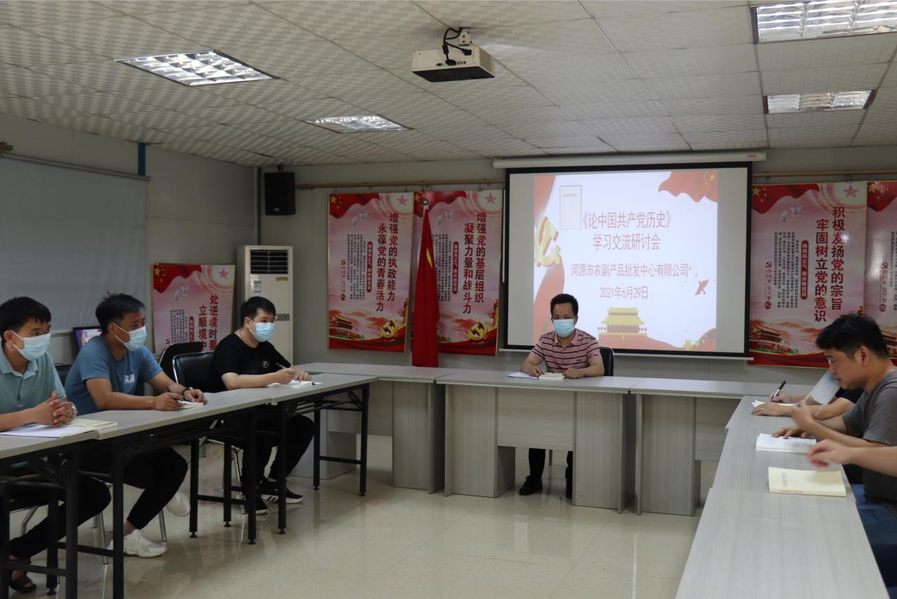 2021年6月29日下午,市農(nóng)批公司黨支部組織開展《論中國共產(chǎn)黨歷史》學(xué)習(xí)交流研討會,研討會由黨支部宣傳委員兼紀檢委員鐘軍賜同志主持,支部全體黨員及公司中層以上管理人員參加了會議。與會人員按照“學(xué)史明理、學(xué)史增信、學(xué)史崇德、學(xué)史力行”的目標(biāo)要求,結(jié)合學(xué)習(xí)《論中國共產(chǎn)黨歷史》的學(xué)習(xí)體會,結(jié)合自身崗位職責(zé)和工作實際,逐一發(fā)言進行交流研討。通過交流研討,與會人員加深了對中國共產(chǎn)黨百年光輝歷程的感悟和認識,為開展好黨史學(xué)習(xí)教育進一步夯實了基礎(chǔ)。
